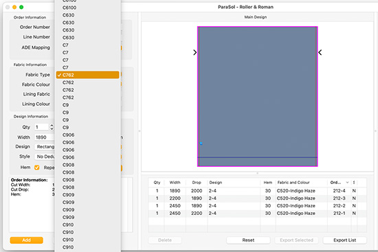 Manual Data Entry. Of course you can run ParaSol R&R with manual data entry and many businesses do. Just select the fabric, the width and drop, the design and the mechanism and ParaSol does the rest.